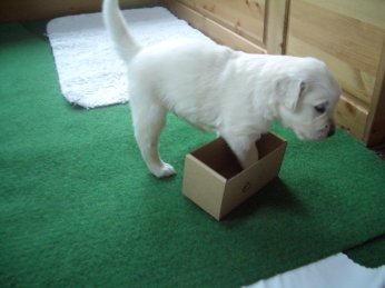 Die Wurfkiste ist uns nun langsam zu klein geworden. Herrchen hat uns einen tollen Spielplatz gebaut.